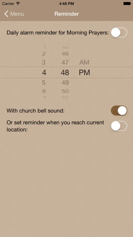 With reminder feature, you can set daily reminder or location-based reminder to encourage yourself to pray more. For the location-based reminder, continued use of GPS running in the background can dramatically decrease battery life.