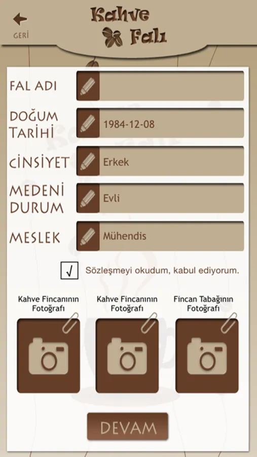 Kahve içtiğim fincanı çok iyi fal bakan arkadaşım yorumladı, aynı fincanın resimlerini programı kullanarak gönderdim, aynı yorumlar geldi, şaka gibi..
