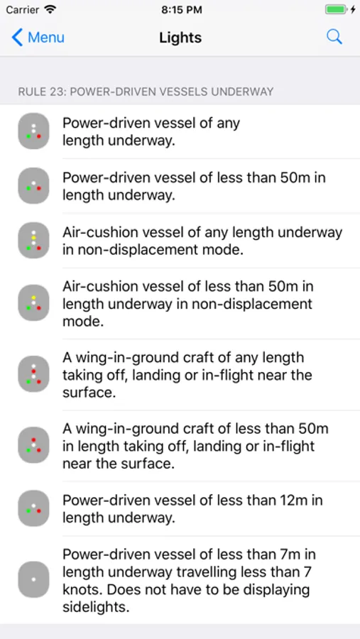 Boat Lights: intuitive, useful and simple to use boat mobile app for boat operators to determine the meaning of navigation lights, shapes and sounds used on the water.