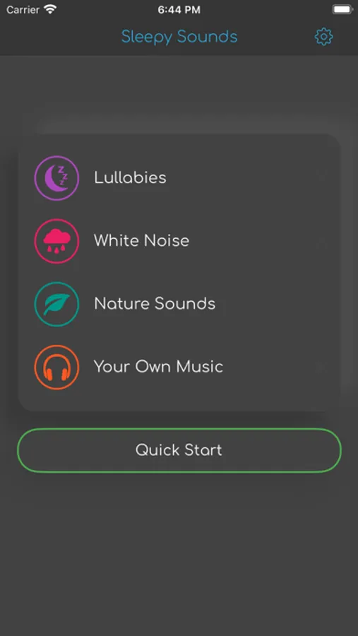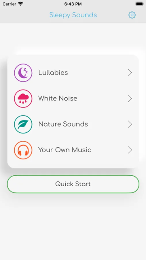 Choose to play Lullabies, White Noise, or Nature Sounds to sooth your baby to sleep. The app lets select how long you want the music / sounds to play for, and will loops until that time has finished.