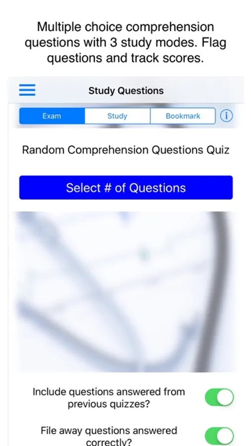 •Choose the number of questions in each practice quiz: 25, 50, 100, 150, 200, or all.