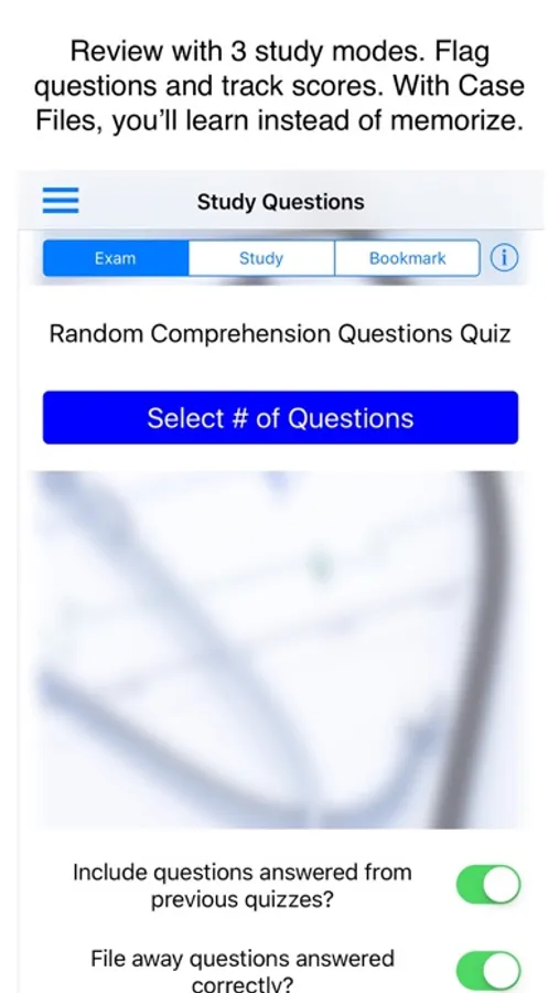•Choose the number of questions in each practice quiz: 25, 50, 100, 150, 200, or all.