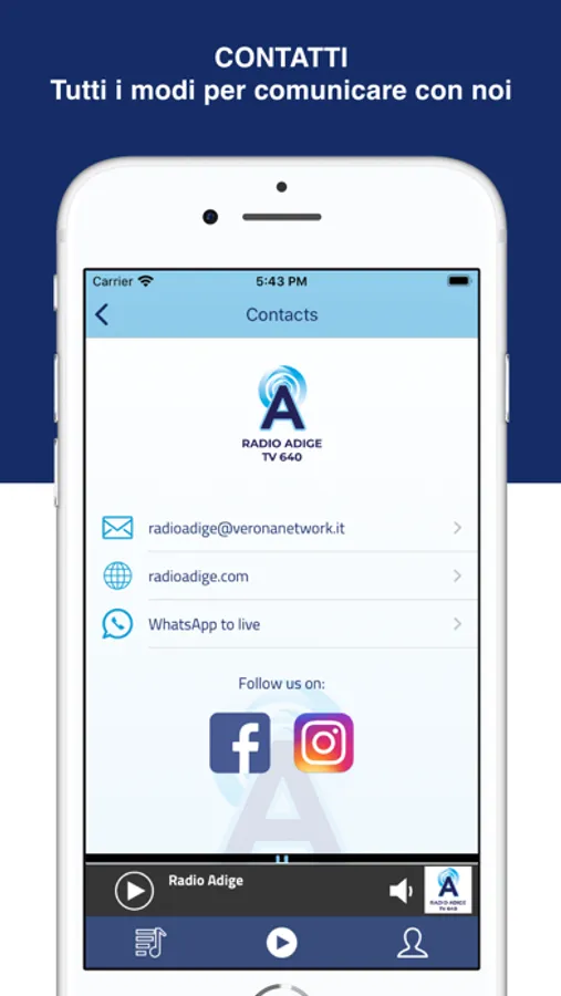 Scarica l'app gratuita di Radio Adige - la radio dei Veronesi sul tuo iPhone: solo grandi successi italiani ed internazionali e informazione locale. Potrai essere costantemente informato sulla cronaca, l'attualità, lo sport, lo spettacolo, con aggiornamenti sulla viabilità di Verona e Provincia.