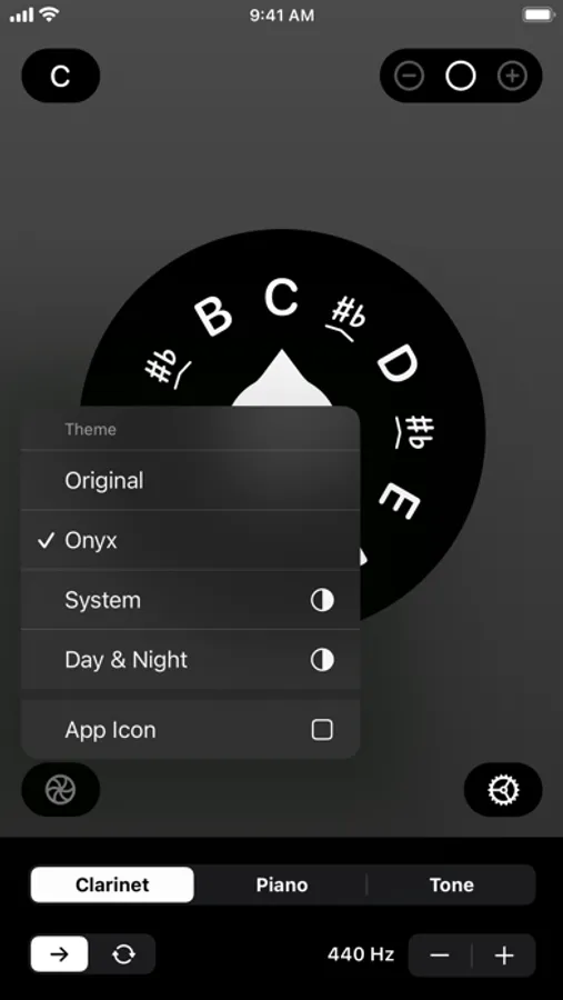 Start off on the right note every time with Onyx. This beautiful pitch pipe sports a three-octave range in C-C or F-F, with your choice of carefully crafted sounds: choose piano or clarinet to hear your note for several seconds, or switch to continuous playback mode* to loop strings or horns for as long as you like. Or, for pinpoint accuracy, use our custom sine wave generator instead and avoid those annoying loud pops that other apps can create. On iOS, all sounds can be tuned to your preferred frequency (due to technical limitations fine tuning is only available when using the Tone sound option on Apple Watch). Use the interactive widget and the watch app for instant access from just about anywhere. Onyx even works when your device is in silent mode, so you don't have to worry about embarrassing interruptions. That's our pitch, now find yours!