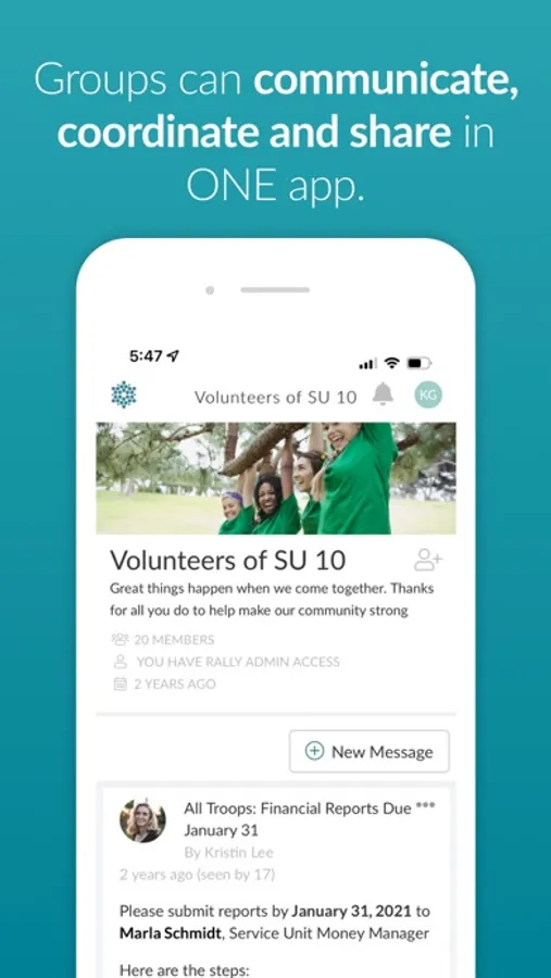 Messaging: Group Message and post comments or send direct messages to individuals.