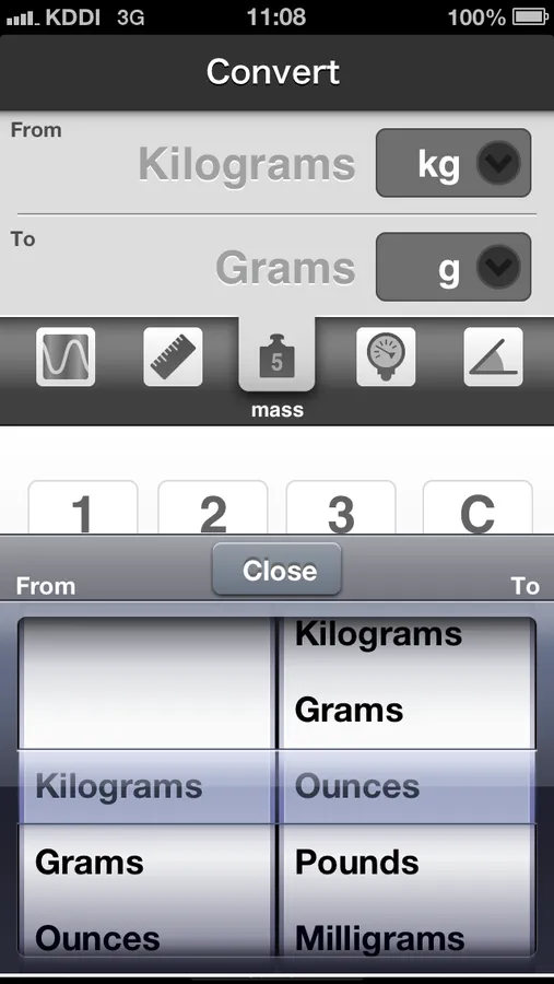 Converter has five groups of units which are useful in laboratory operations. These include Wave, Distance, Mass, Pressure, and Angle conversions.