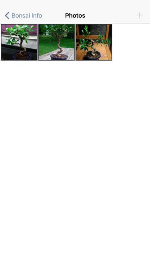 Please note that Bonsai Album does not come preloaded with any photos, nor does it include any bonsai care information and so forth. It only tracks information and displays photos you’ve added yourself.
