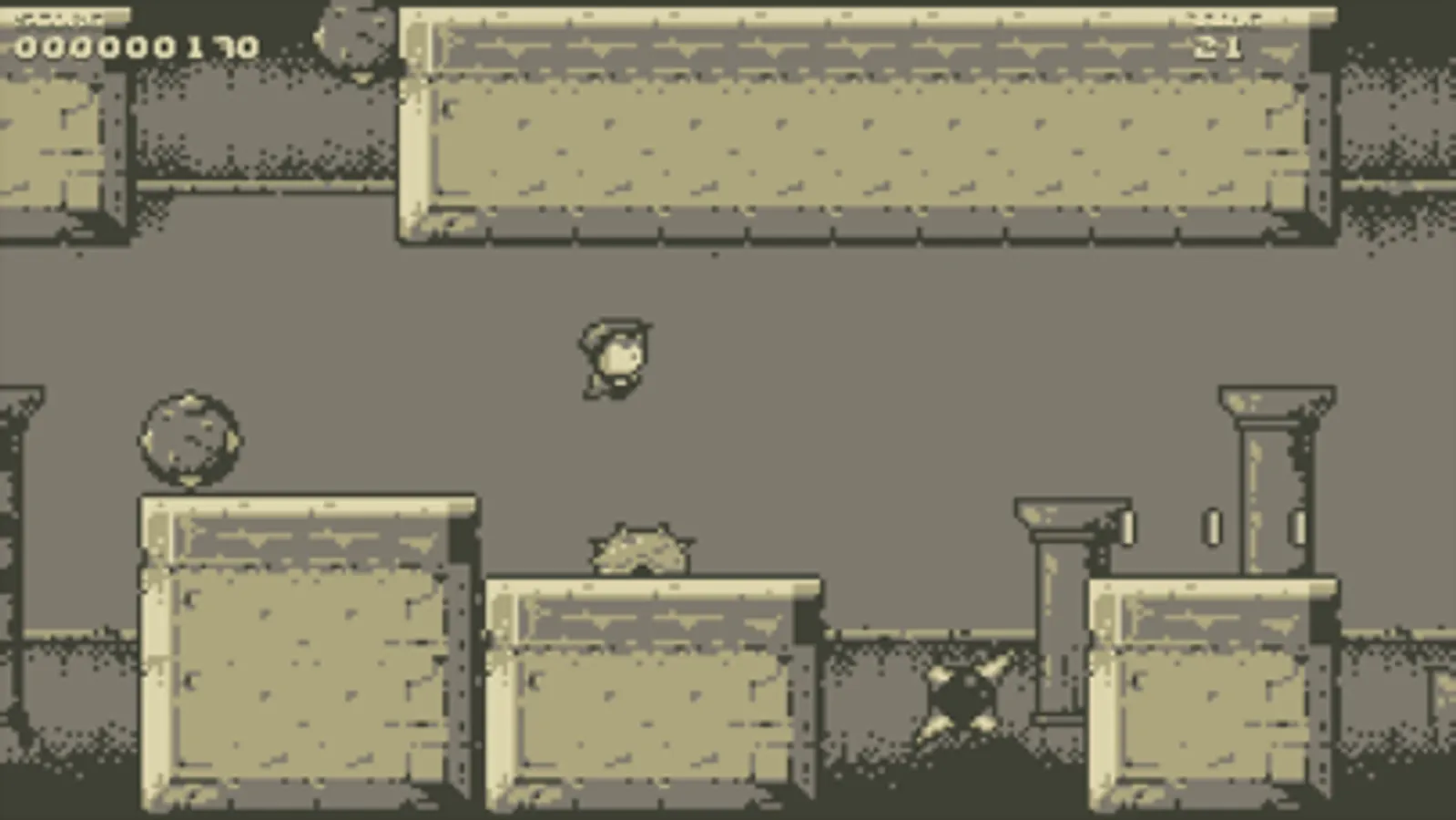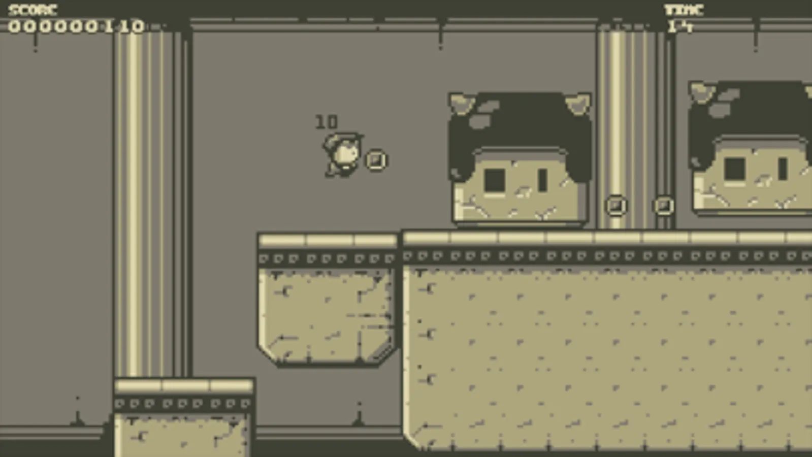 Not just the looks of a classic game, also the gameplay of a classic platformer. This game is NOT EASY! you have an endless amount of lives, so you can quickly restart a level when you miss a jump, get hit by an enemy, get bitten by a plant, get hit by a spiky-ball, crushed by big statues, run onto spikes, get hit by a wasp, or any of the other many ways you’ll get stopped in your run.