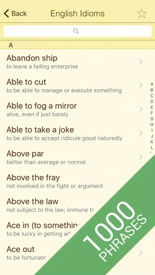 ● An option to mark idioms as ‘Favorites’ and create your own list of expressions;