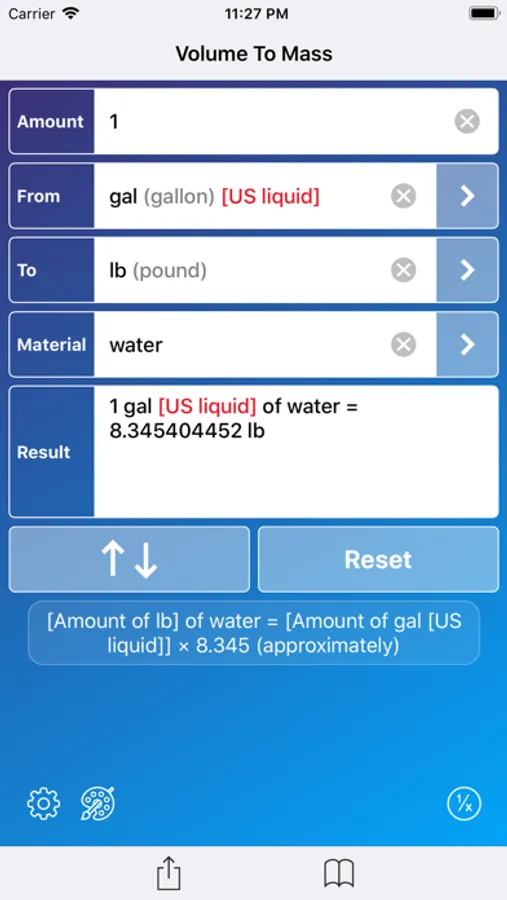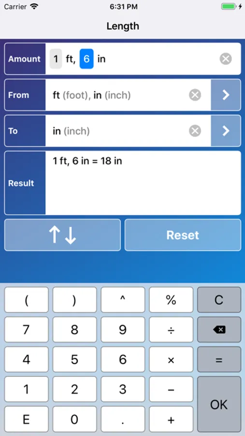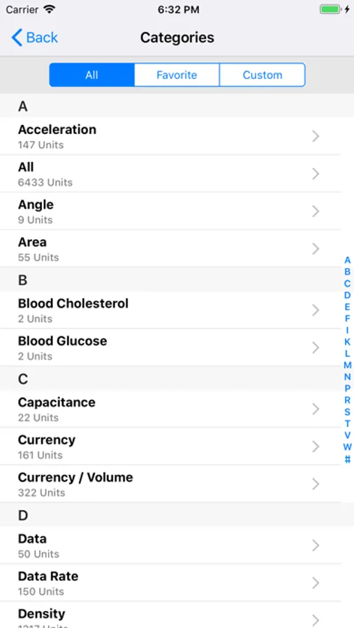 As you type, the most likely units appear. Once you have selected a unit, the other unit is automatically restricted to the category of the current unit. At any time you can browse through the complete list of units available by tapping on the buttons to the right of the input fields. Advanced features include bookmarks and an integrated calculator. With over 6,400 units, this is the only unit converter you will ever need.
