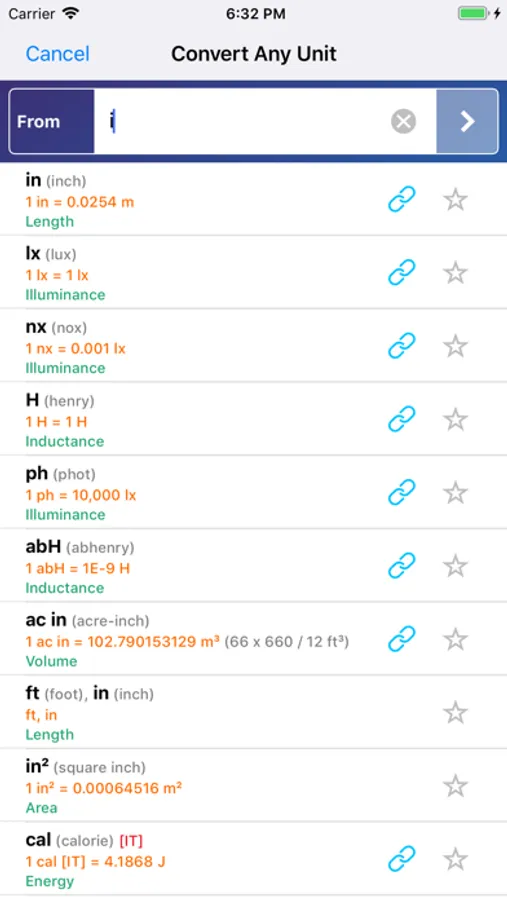 • Search faster by typing in only the unit abbreviation or first letter of each word in the unit.