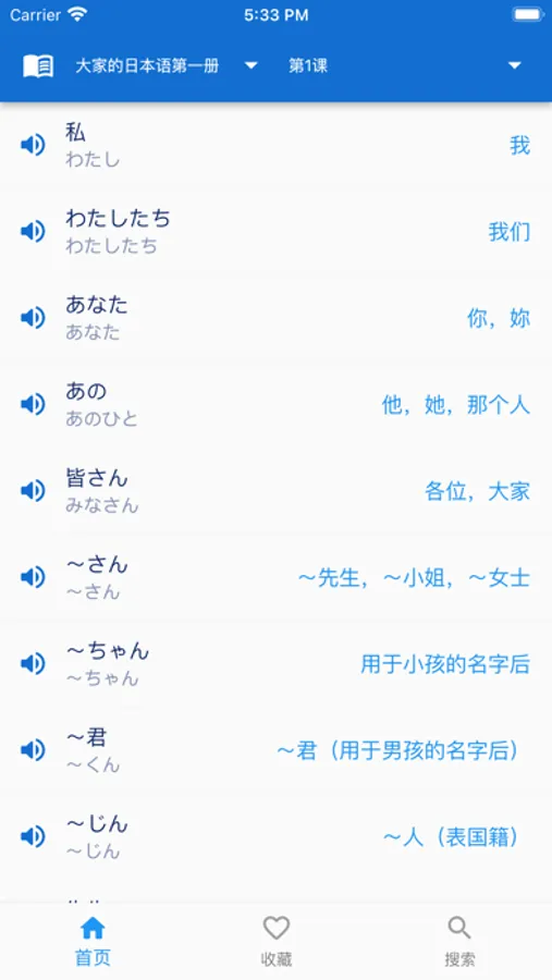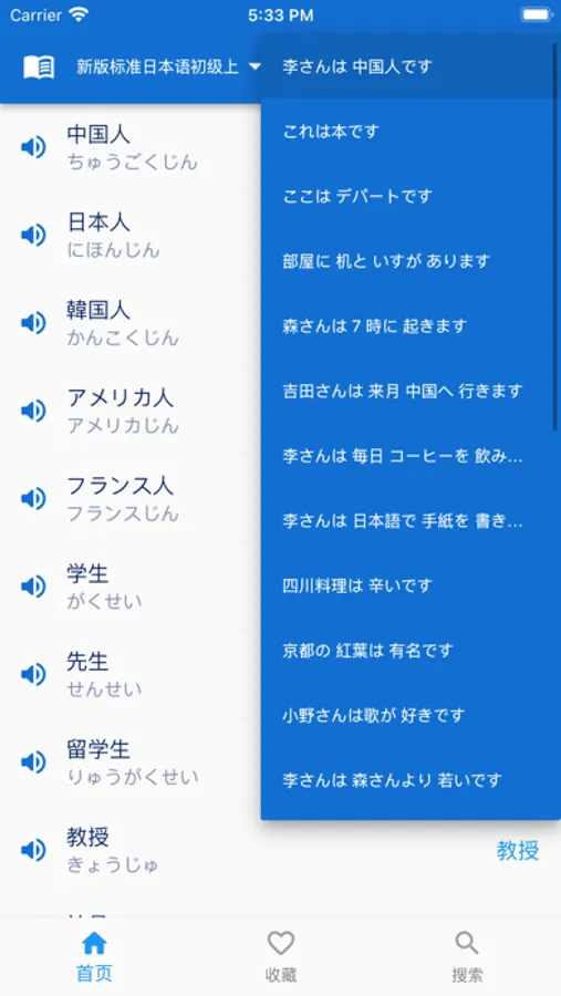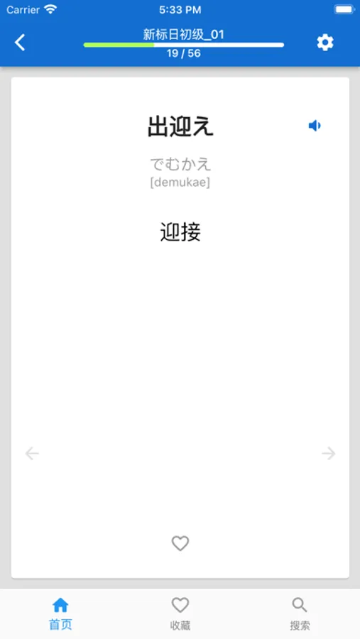 背诵日语单词的应用。支持单词发声,可以将单词加入收藏夹以便日后复习。
