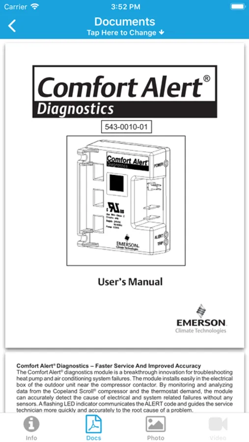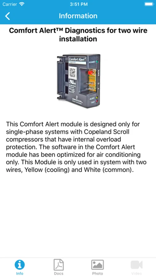 This app allows contractors to easily access compressor electronics product specifications along with the ability to interface with and diagnose the system. Contractors can choose to enter the flashing “alert” code from the electronics module or use a tap feature to help identify the code. Entering the code, gains them access to troubleshooting “tips and tricks” as well as an interactive flow chart to aid in diagnosing system problems.