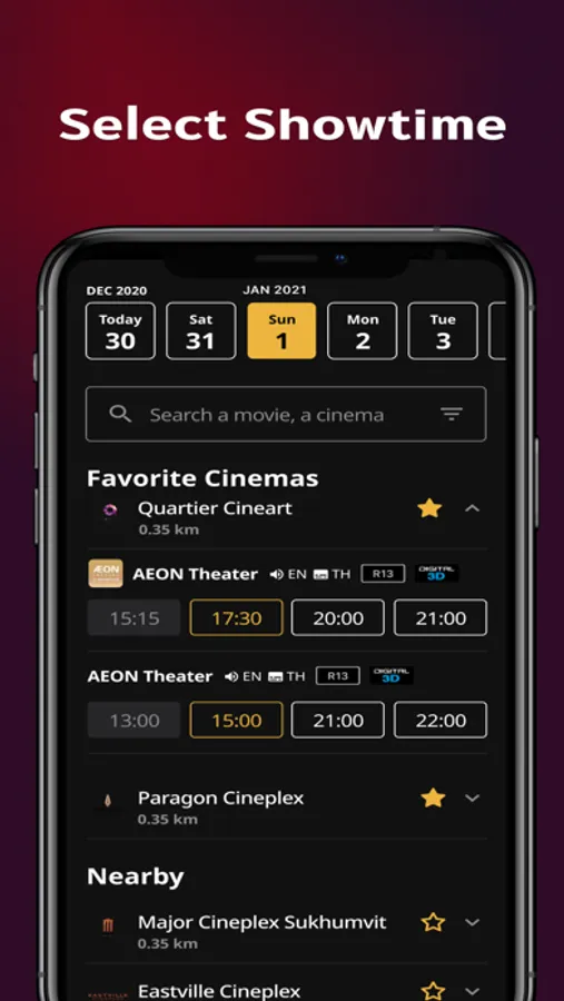 With more simplified and faster function than ever to reserve tickets, watch the trailers, and share them online in less than a second. It can even remember your favorite cinemas!