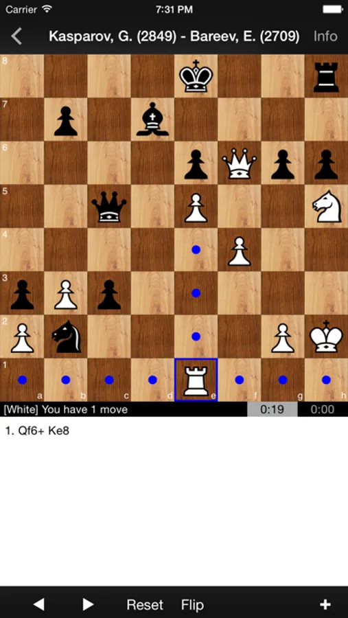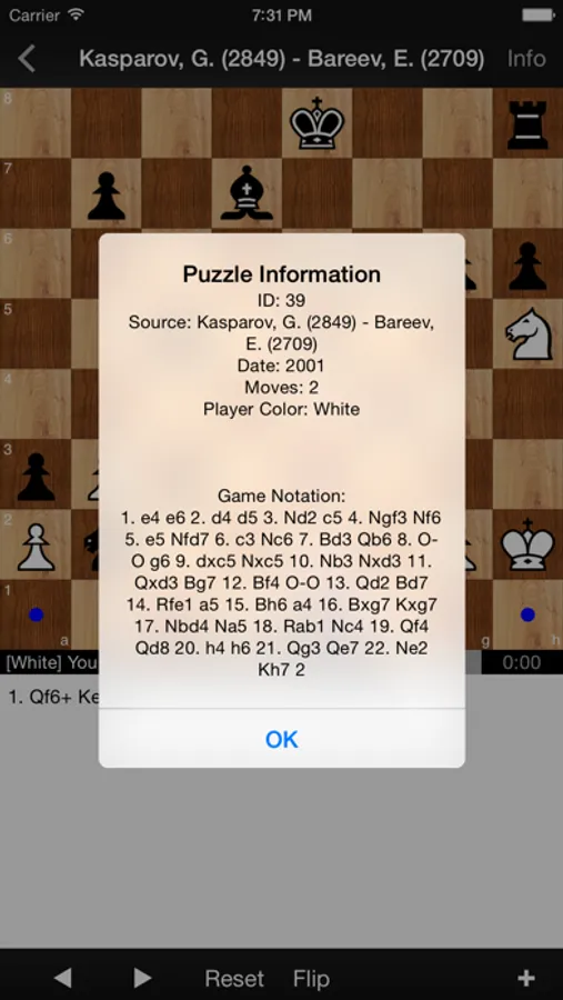 The app includes 645 interactive puzzles ranging from mate in 2 moves all the way to mate in 17 moves! The object is to finish each puzzle by forcing a checkmate in a given number of moves. These puzzles are fun to play and can be enjoyed at your leisure on your iPhone, iPod touch, and iPad.