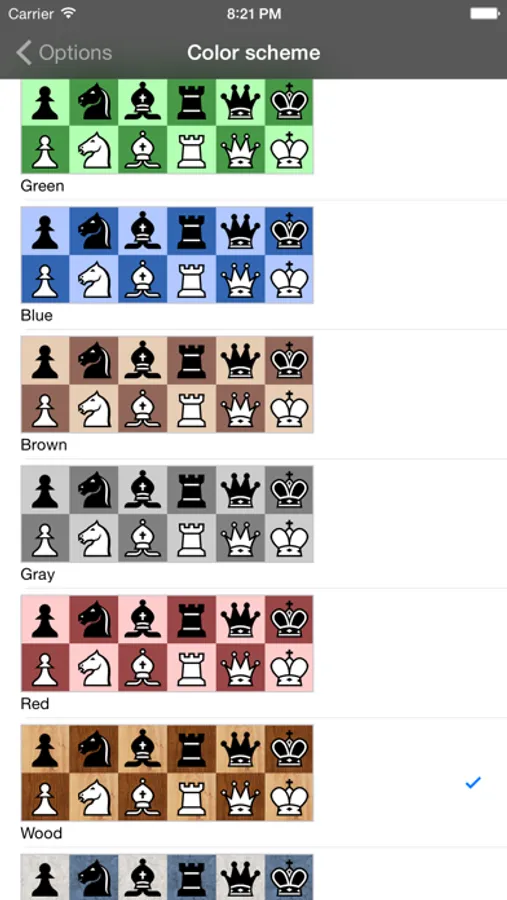 - Lots of options: 7 chess piece sets and 7 different colors schemes including wood and marble.