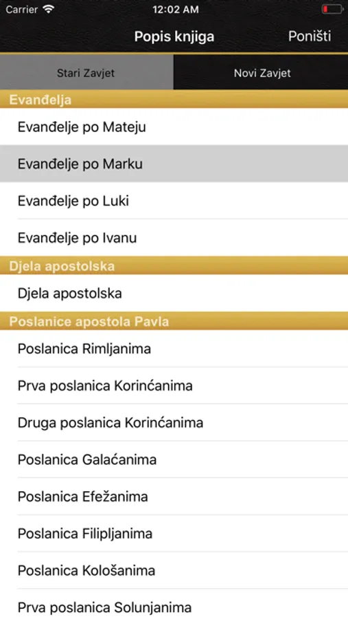 - pregled biblijskog teksta po biblijskim knjigama i glavama