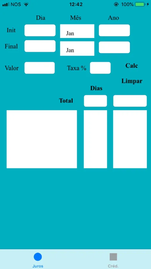Esta aplicação visa o cálculo de juros - permite determinar juros referentes a diversos períodos, montantes e taxas, descriminando as sucessivas parcelas e operando automaticamente a respectiva soma