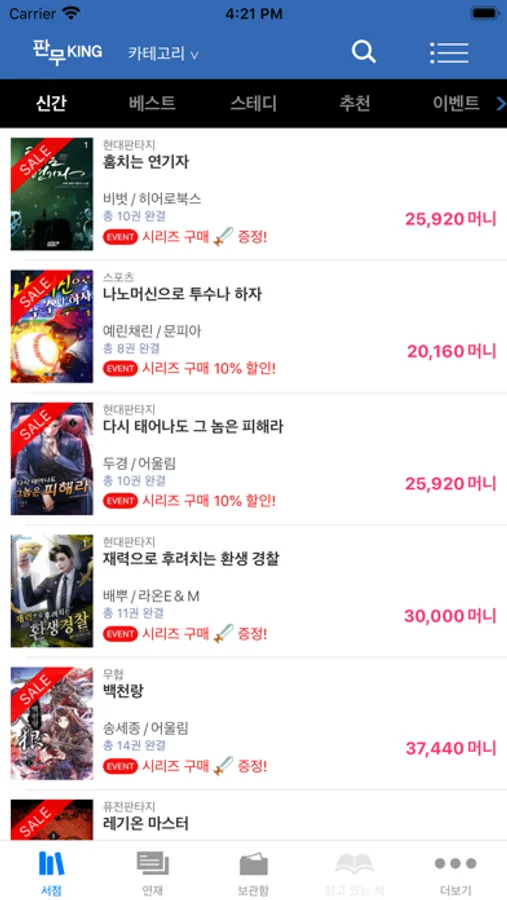 에피루스의 베스트 판타지 무협 소설 앱서점입니다.