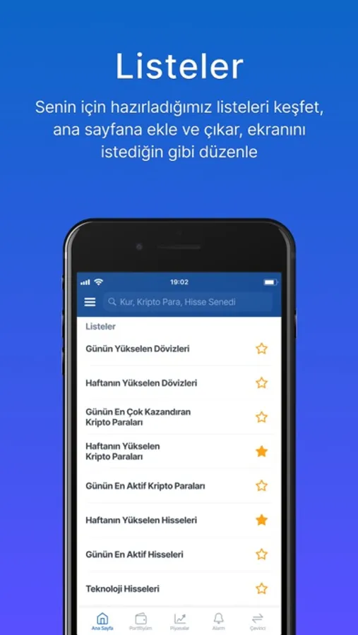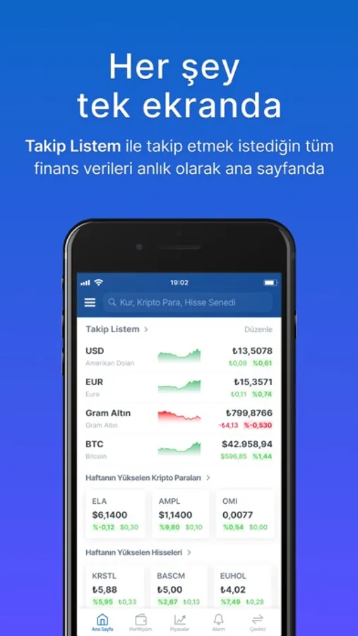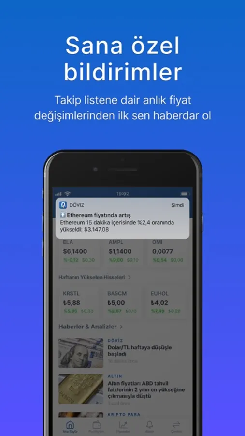 • Takip listene dair sana özel fiyat değişim bildirimleri ile piyasa hareketlerinden ilk sen haberdar ol.