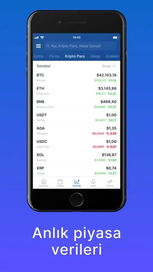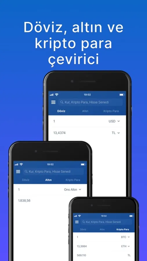 • Döviz çevirici ile 70’ten fazla döviz kurunu, altın çeşitlerini ve kripto paraları birbirleriyle karşılaştır.