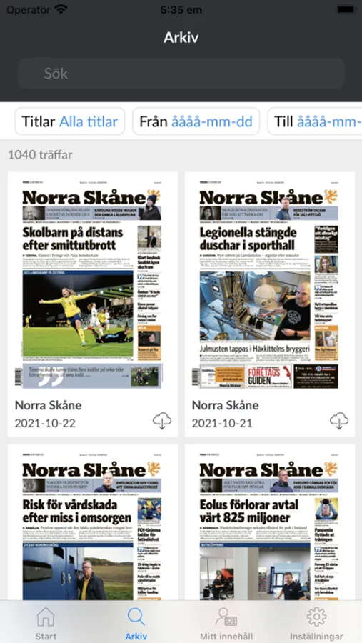 Du kan välja att läsa artiklarna i ett tidningsläge där du bläddrar bland sidorna och zoomar in på sidan.