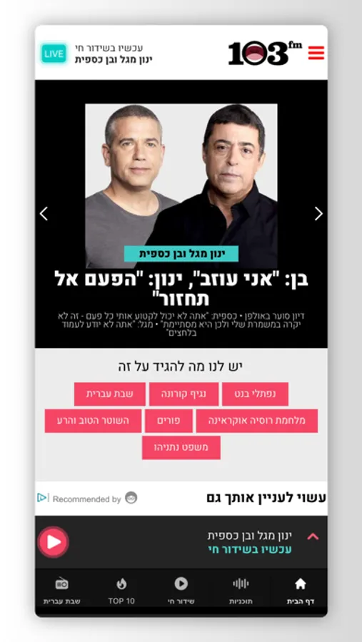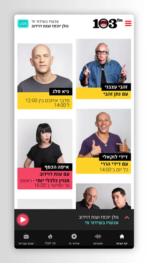 באפליקציית 103fm תוכלו להאזין לכל התוכניות של הרדיו הבועט במדינה. לנבחרת השדרנים של 103fm, יש מה להגיד על כל נושא - בכל זמן ובכל מקום.