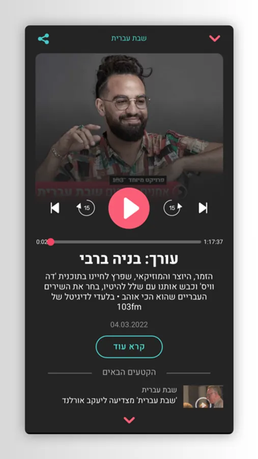 בנוסף, תמצאו באפליקציה קטעים מקוצרים מתוך התוכניות האהובות לשיתוף מהיר ברשתות החברתיות, תוכלו להאזין לתכנים שלא שודרו ברדיו ולצפות בשידורי וידיאו מתוך האולפן.