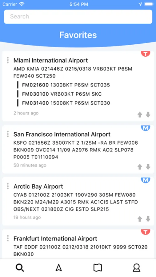 * Keep a list of your favorite airports and weather stations' up-to-date TAF and/or METAR reports.
