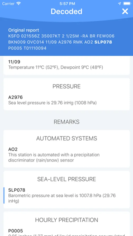 With the new METAR Reader app comes a completely rewritten decode engine that is actively being updated so it can decode most observations in even the most sophisticated METAR reports provided by thousands of airports and weather stations around the world.