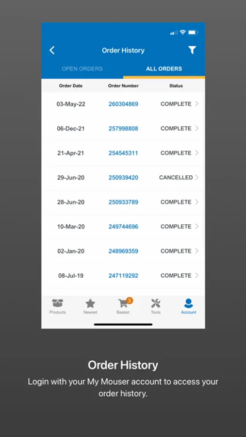 Use the app to access your My Mouser account to view order history, order details, and order status information. You can also bookmark products or add them to projects for quick access or to review offline. Always stay connected to Mouser and the newest products for your latest designs.