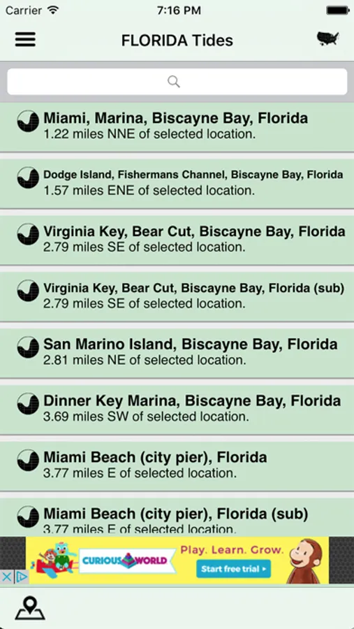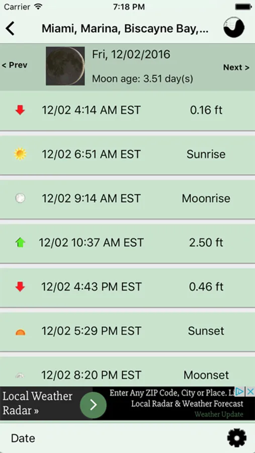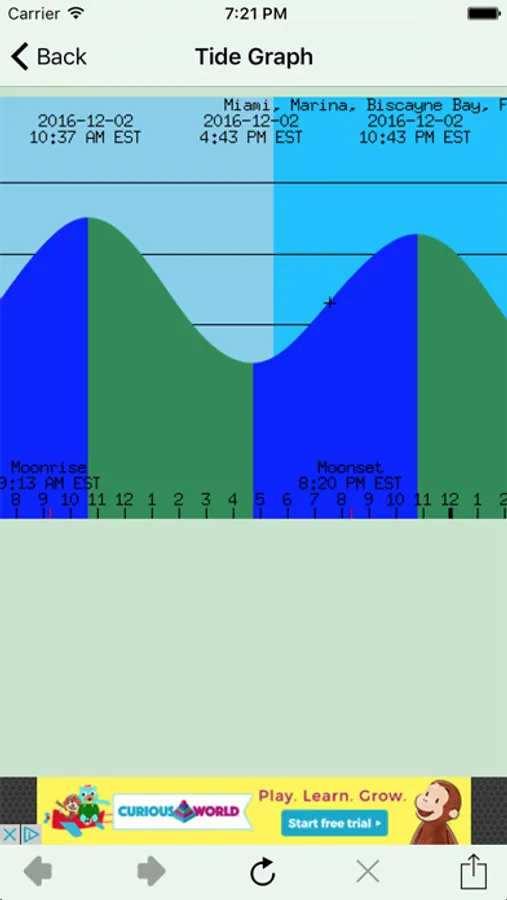 Information is displayed in an easy to read format that gives you tide events as well as sunrise, sunset, moonrise, and moonset.