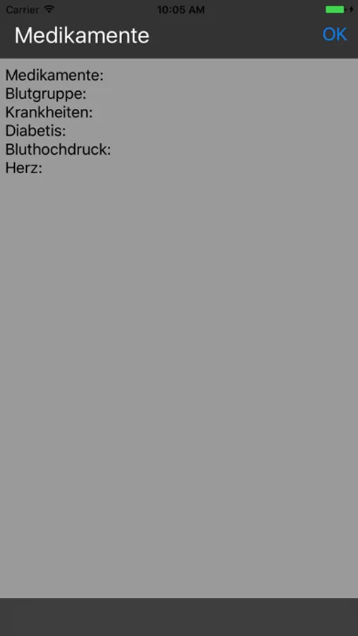 Tragen Sie hier ihre Medikamente, Blutgruppe, Krankheiten usw. ein, damit im Notfall ein Arzt ihnen besser helfen kann.