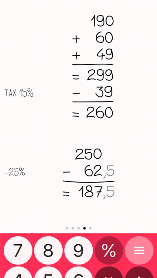 Calculus doodlus is multi-page, saves your work automatically, calculates % and VAT, and more... Check out all features and functions in the documentation.