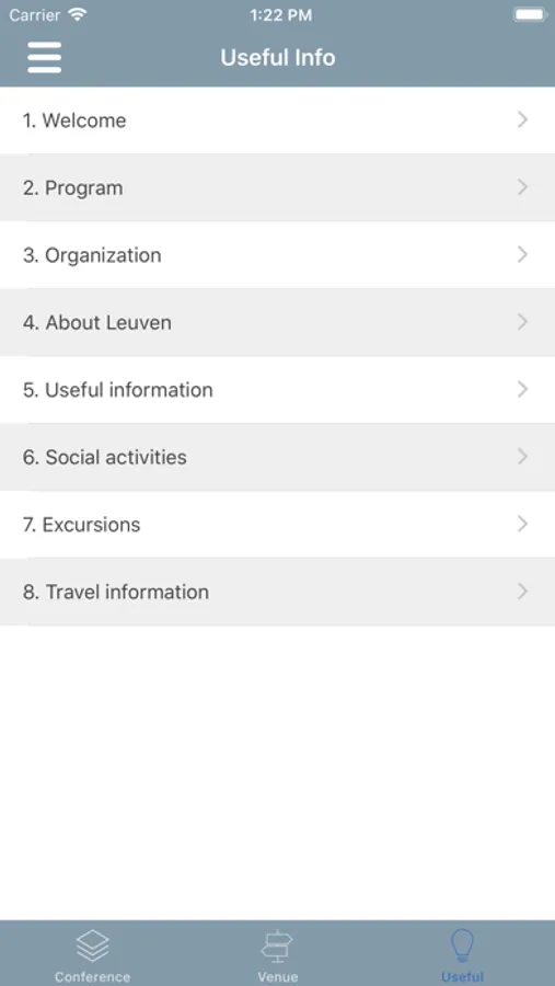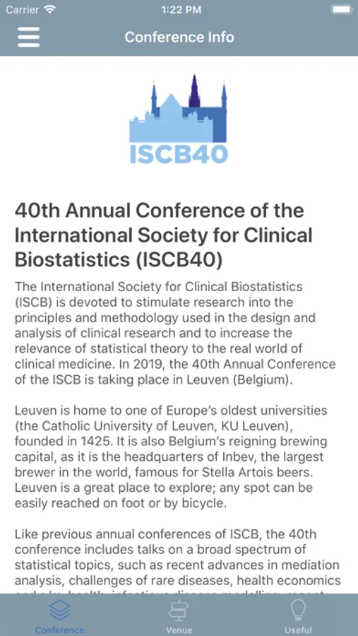 - Easy access to conference's key information (venue, accommodation, etc.)