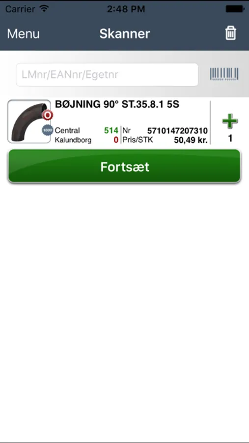 • Stregkodescanning af varenumre via kamera