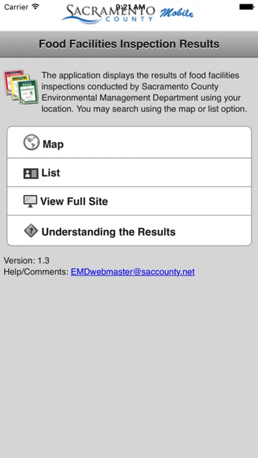 Sac Food includes all retail food facilities in Sacramento County, California. App shows most recent Environmental Health inspection result long with links to view the most recent food inspection report and the food inspection history.