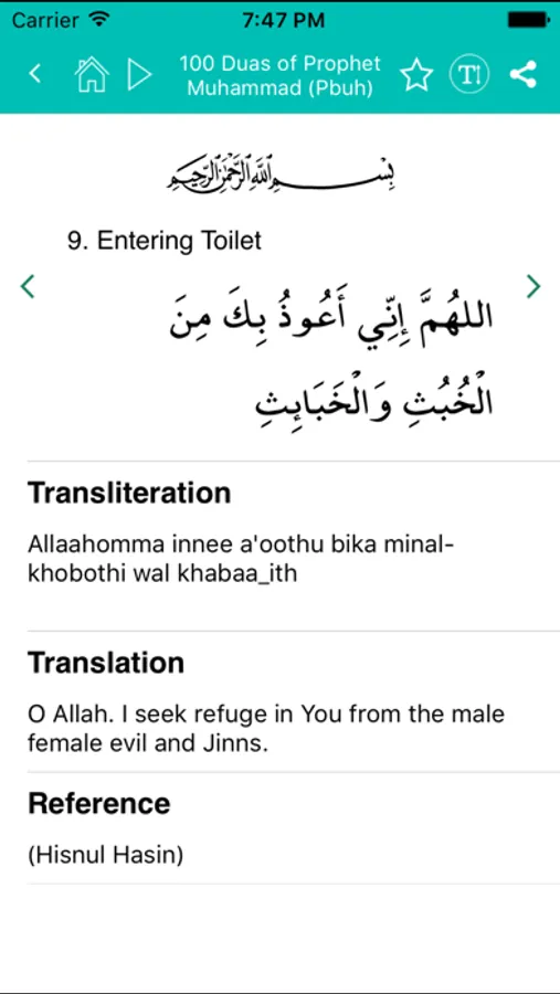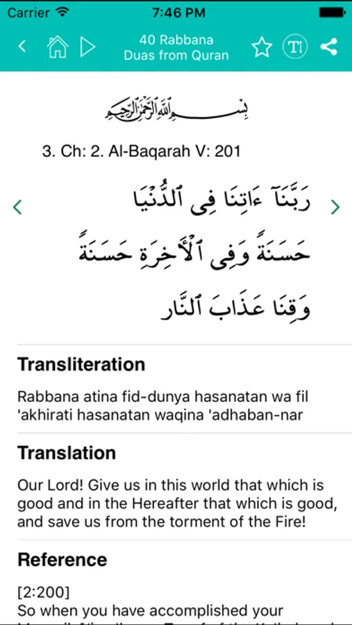 Quran Dua is a Collection of Beatiful Duas / Supplications from the Glorious Quran known as 40 Rabbana duas. It also include dua's from the popular Hisnul Muslim which contains an additional 100+ dua's very useful in our day to day life.