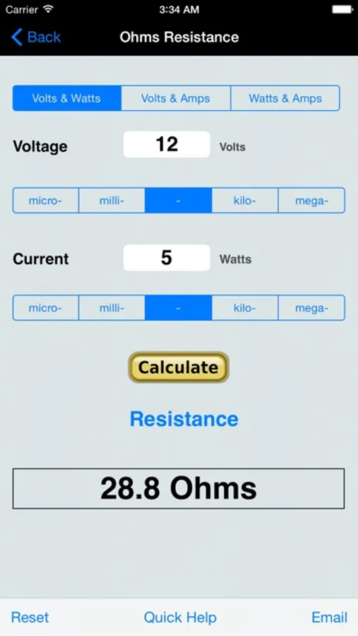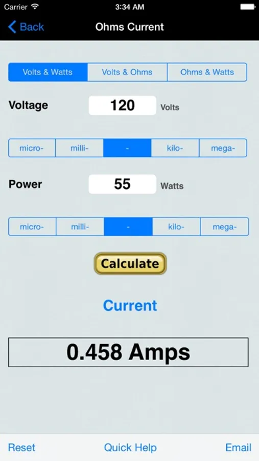 The Ohm's Law for Power, Current, Voltage & Resistance app is an app to get the electronic and electrical calculations using voltage, watts, and amps.