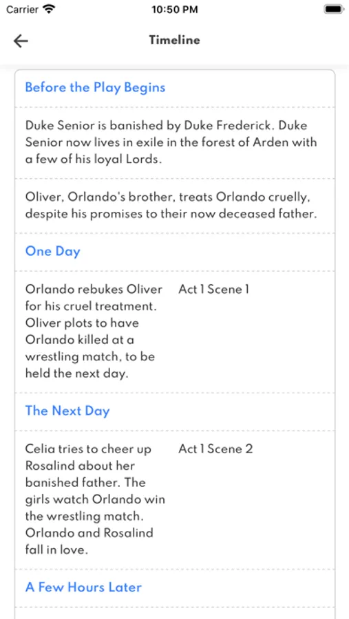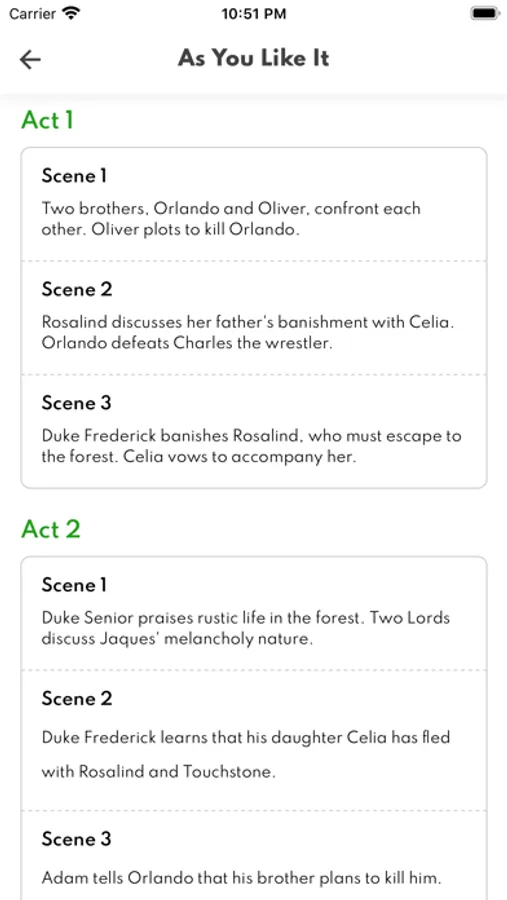 A detailed overview of every act and scene in the play.
