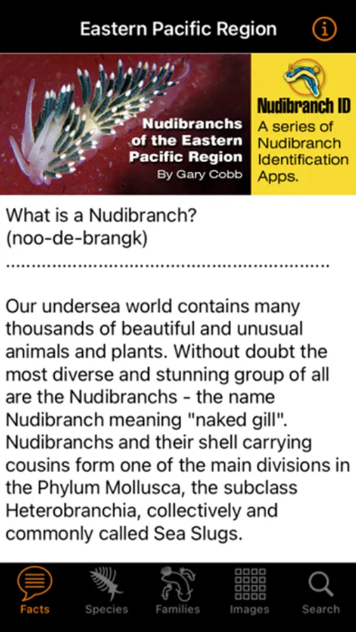 - This field guide will place right at your fingertips, anytime and anywhere, the most comprehensive collection of Nudibranch species to be found in the Eastern Pacific Region.