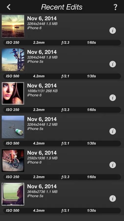 - Recent edits list that maintains recently edited photos so that you may continue an edit session later