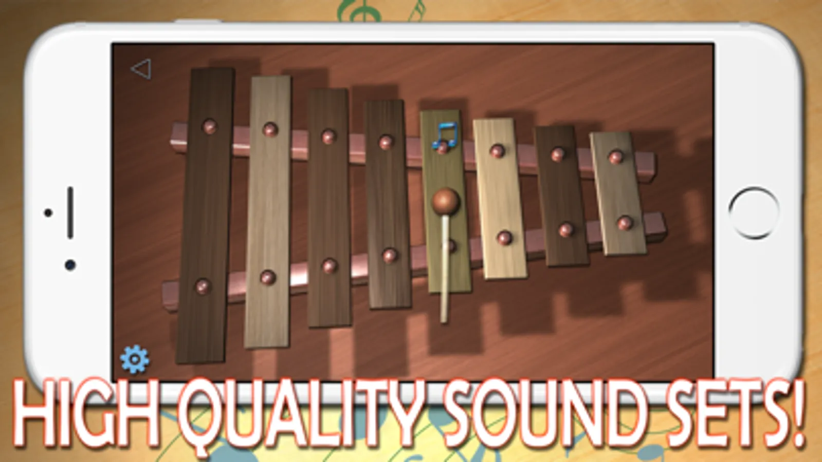 * 8 different high quality sound sets (xylophone, marimba, metallophone, glockenspiel, vibraphone, etc.) + Cat & Dog sound sets for your kids.
