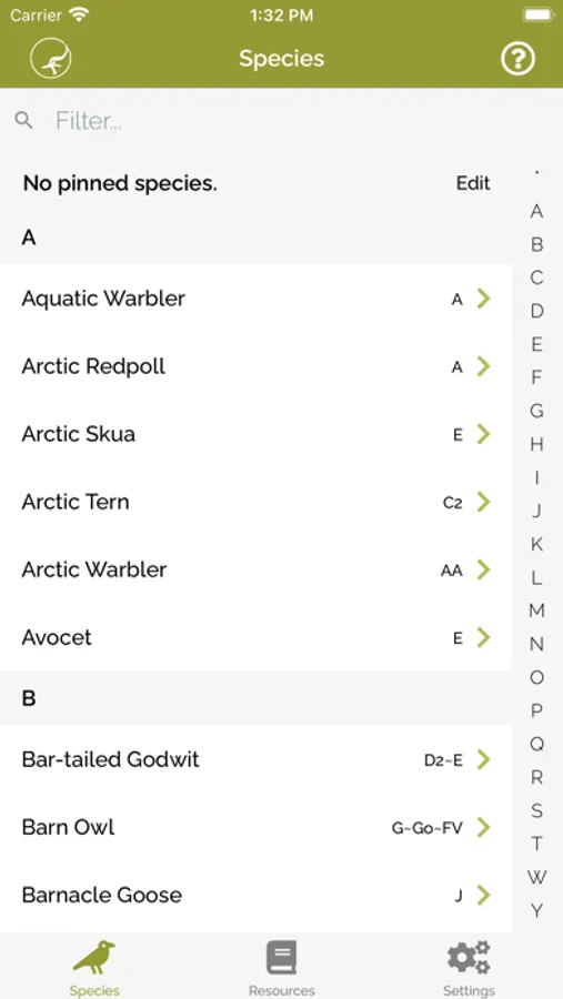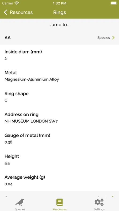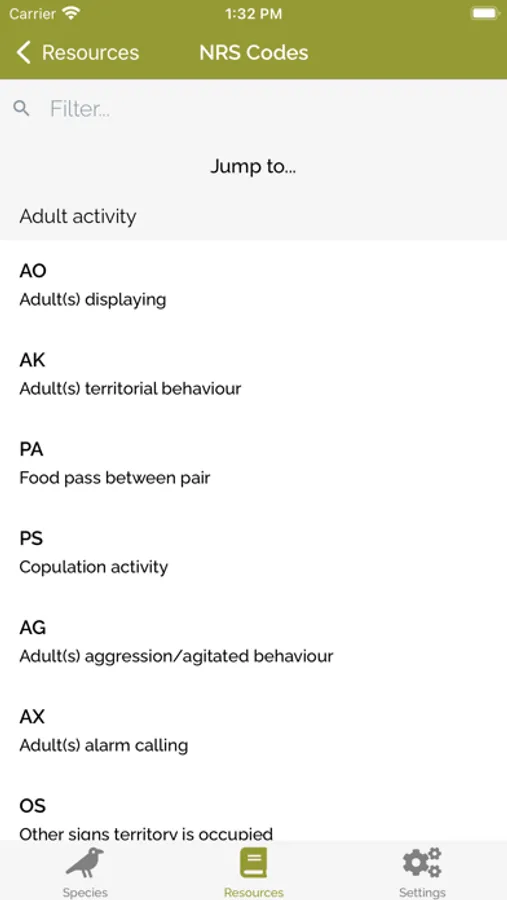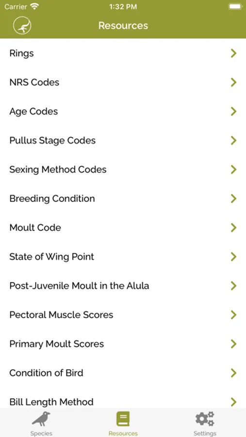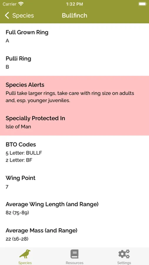 An app to help bird ringers, nest recorders and scientists check the correct ring sizes/codes to use for each bird species ringed in the UK (for both full-grown birds and pulli) and the codes needed to record nests and their contents. The app also includes the codes needed to record biometrics, condition and status information for each bird as well as the standard habitat codes.