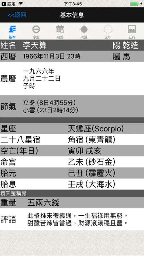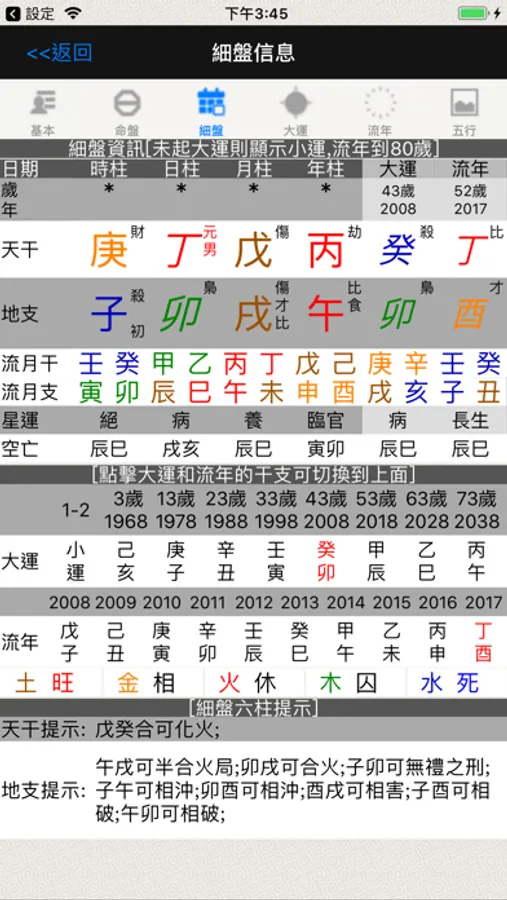 -- 強大實用的細盤功能,大運和流年互相關聯,點擊大運流年可以互動大運未起以小運代替,小運和流年互相關聯;