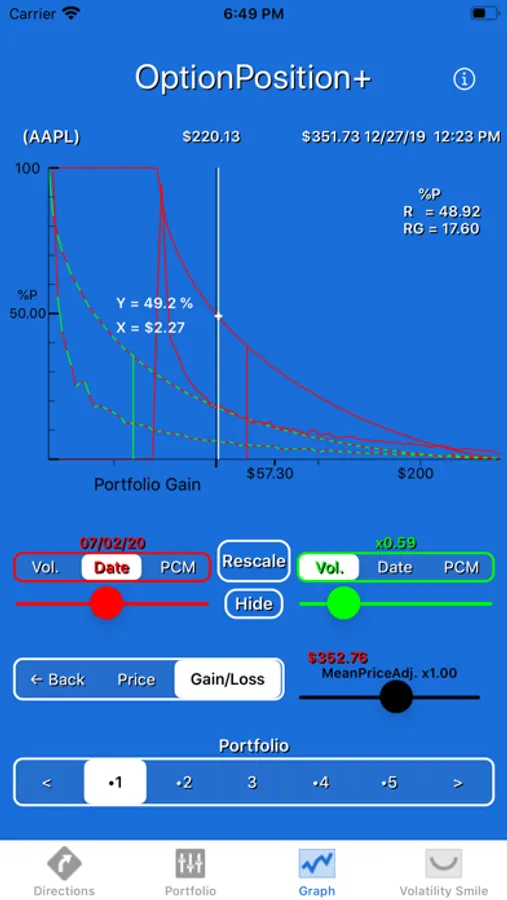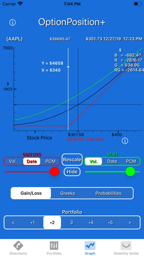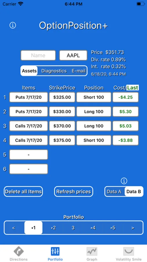 OptionPosition+ is a financial analysis App that estimates the value of a set of shares and put and call options for a particular stock. It allows the investor to explore various option hedging positions and create a portfolio that is sensitive to price and volatility fluctuations or that provides protection for various concerns. OptionPosition+ graphically illustrates the value of put protection, covered calls, call spreads, time spreads, delta neutral skew trades, iron condors, etc.. Examples of the use of OptionPosition to explore and display various hedging and speculative strategies are located at our website: www.OptionPosition.com.
