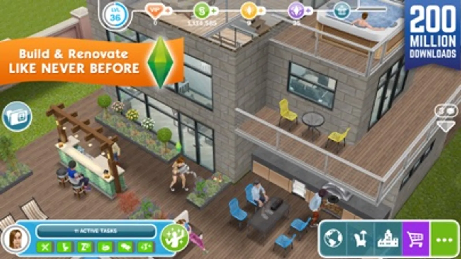 The Sims™ FreePlay lets you create, customize, design and build to your heart’s content on mobile!