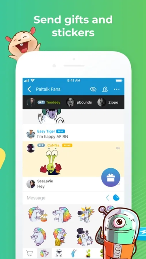 -EXCLUSIVE VIRTUAL STORE: send and receive virtual stickers and gifts exclusive to the Paltalk ecosystem, with special appearances from pop culture characters and brands you love; try sending gifts as an icebreaker with a hello message for a new friend. Each gift sent or received earns points toward special status as a Paltalk Crown member.