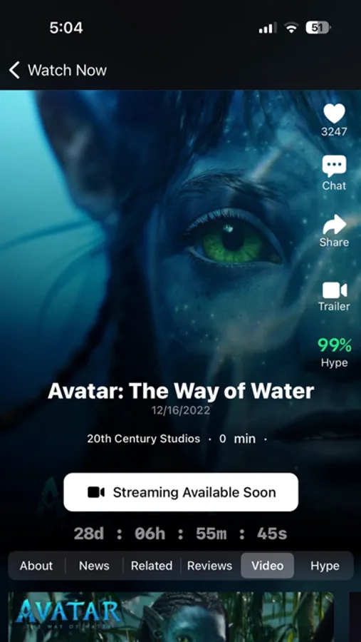 Follow films to set countdown alerts and get release reminders, get breaking movie news, chat about upcoming movies with friends, and be the first to watch trailers and watch movies at the theater or in-home.