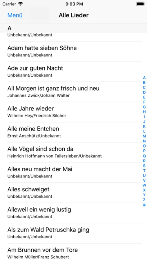 Lieder werden regelmäßig hinzugefügt, wenn die Erlaubnis des Autors gegeben werden kann.